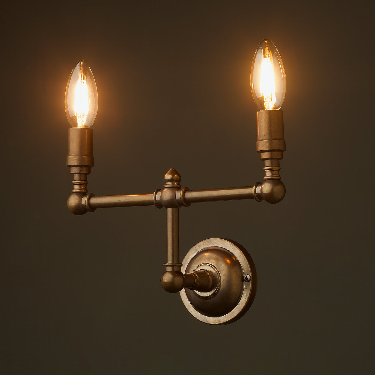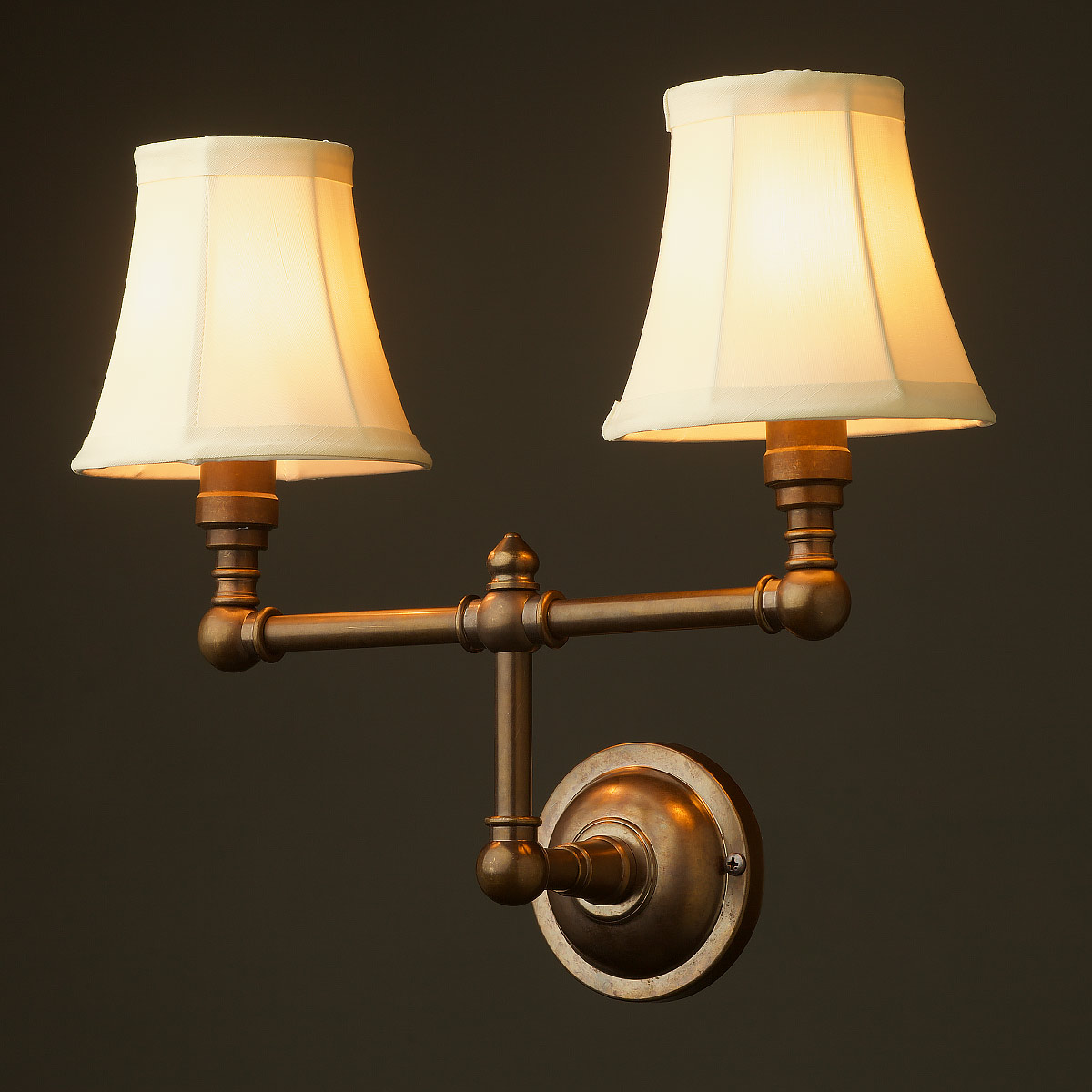 Illuminate your space with the refined elegance of our Antique Brass Candelabra Twin Shade Wall Light E14 240V. This piece, crafted from solid brass hardware, exudes a timeless charm that complements various interior styles. It’s designed with mid-century inspired shades, bringing a touch of nostalgic flair to modern and traditional homes alike.