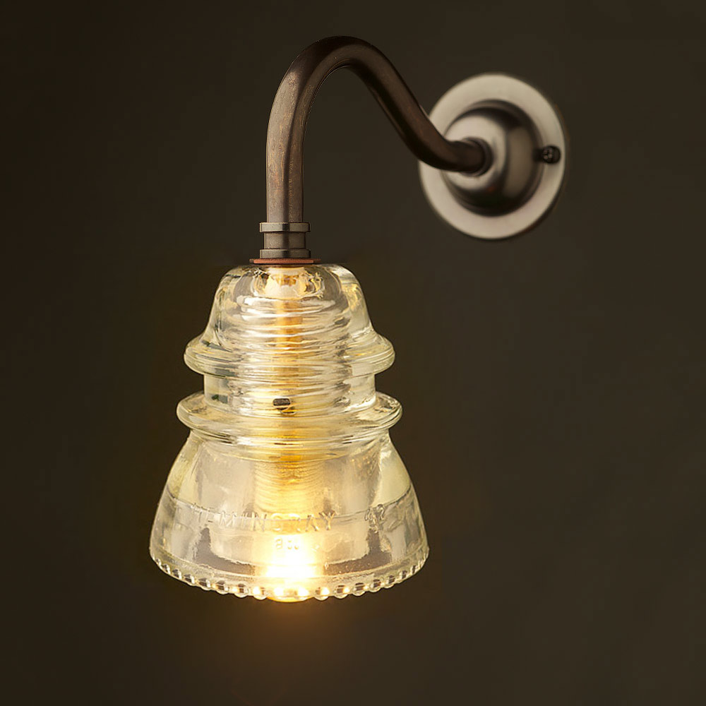 Brass Coventry Wall Insulator No42 E14 fitting, 24O V, 4A with antique bronze body, ceramic insert and insulated thread and screw terminals. Comes with 1/2″ threaded hollow arm and wall plate for installation to wall surface. The telephone Insulator is attached to the lamp holder using the 10mm top thread and bronze coupler. Locking mechanism means the body cannot be unscrewed accidentally when changing the bulb.