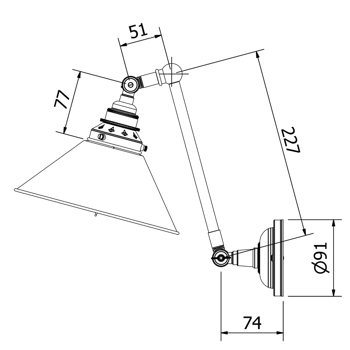 Bronze Adjustable Arm Wall Mount Shade with bronze plated brass body. Comes fully assembled with 6″ threaded hollow arm, two wingnut adjustable elbows and a wall plate for installation to the wall surface. The Bronze Adjustable Arm Wall Mount Shade component is attached to the lamp holder via a 2 1/4″ Gallery. ย A locking mechanism means the lamp holder body cannot be unscrewed accidentally when changing the bulb.